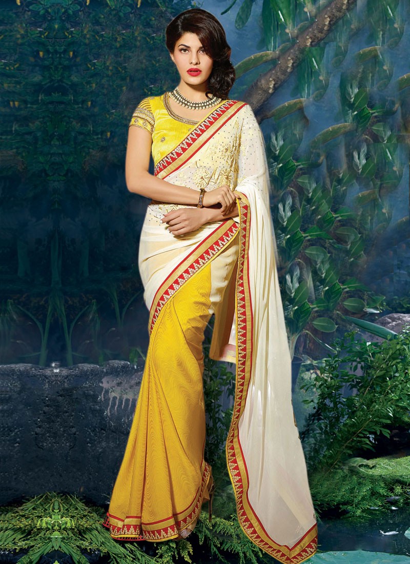 Home Uncategorized Jacqueline Fernandez White Saree - Jacqueline fernandez is spoted in red sarees, blue sarees, black sarees, green sarees, yellow, orange, white and more colors. January 24, 2021